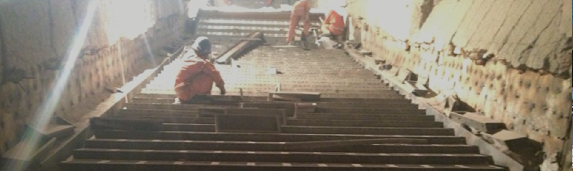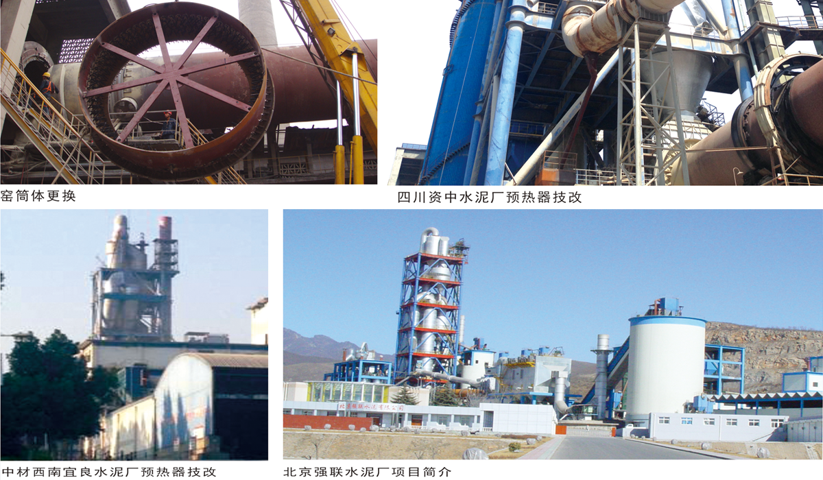 我公司每年為十幾個水泥廠提供大修改造服務,主要內容有∶ 窯系統換民,預熱器更換澆筑料窯托輪更換軸承瓦,更換窯口鐵,更換筒體; 磨機更換襯板,銅壓機更換銀套,立磨更換襯板及輾套; 破碎機更換襯板及錘頭,堆取料機更換鏈條及刮板; 全廠電機檢查,其他附機設備檢修; 其他甲方要求的項目。