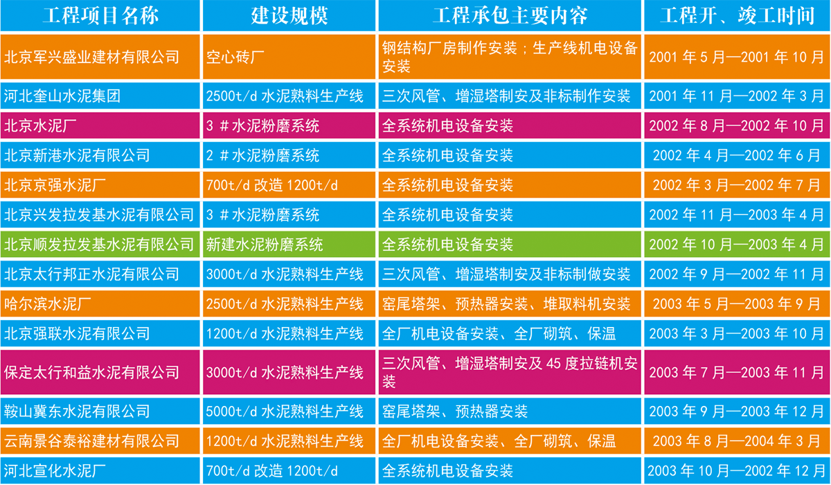 新建項目:全線機電設備安裝和調試 包括大型管磨、立磨、減速機安裝調試,預熱器、回轉窯、能冷機安裝調試
